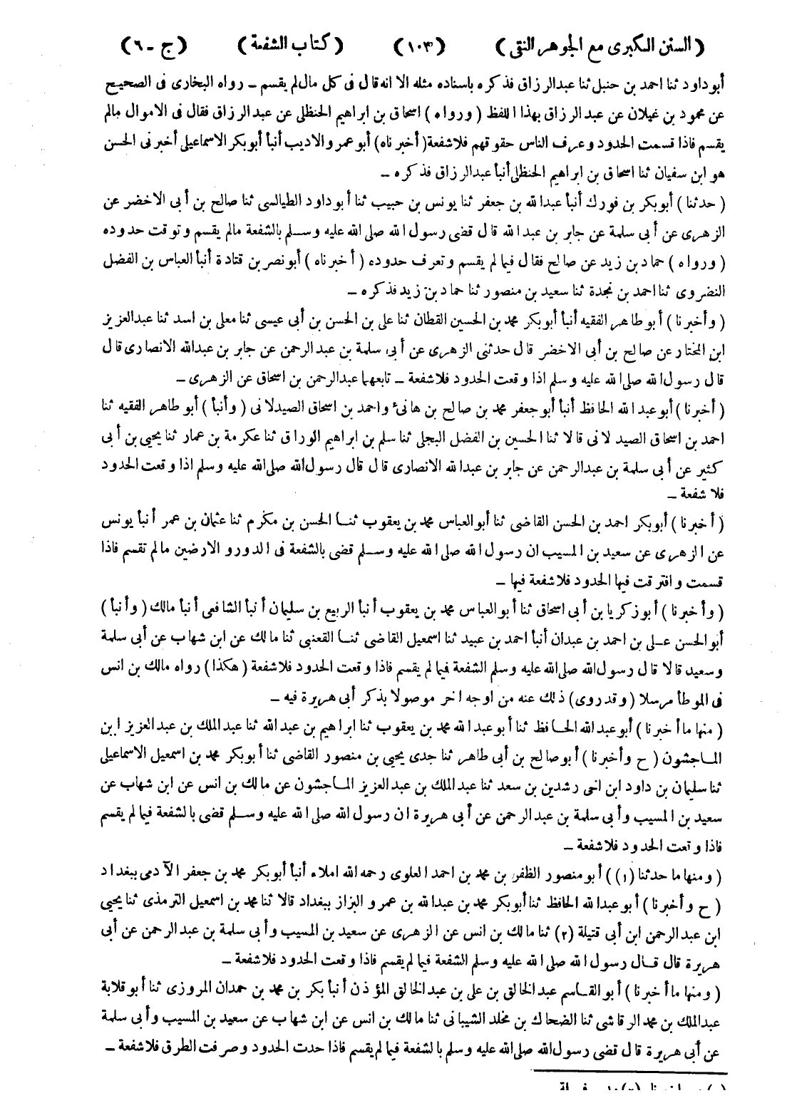 (حدثنا) أبو بكر بن فورك أنبأ عبد الله بن جعفر ثنا يونس بن حبيب ثنا أبو داود الطيالسي ثنا صالح بن أبى الاخضر عن الزهري عن أبى سلمة عن جابر بن عبد الله قال قضى رسول الله صلى الله عليه وسلم بالشفعة ما لم يقسم وتوقت حدوده (ورواه) حماد بن زيد عن صالح فقال فيما لم يقسم وتعرف حدوده (أخبرناه) أبو نصر بن قتادة أنبأ العباس بن الفضل النضروى ثنا احمد نجدة ثنا سعيد بن منصور ثنا حماد بن زيد فذكره