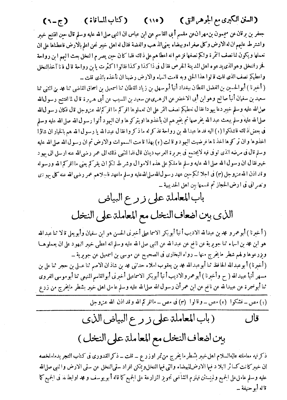 بين اضعاف النخل مع المعاملة على النخل) ذكر فيه معاملته عليه السلام اهل خيبر بشطر ما يخرج من ثمر أو زرع - قلت - ذكر القدورى في كتاب التجريد ما ملخصه ان خيبر كانت كسائر البلاد فيها الارض البيضاء والتى فيها النخل ويمكن افراد سقى النخل عن سقى الارض والنبى صلى الله عليه وسلم عامل على الجميع ولم يستثن فيلزم الشافعي تجويز المزارعة على الجميع كما قاله أبو يوسف ومحمد أو ابطالها في الجميع كما قاله أبو حنيفة -