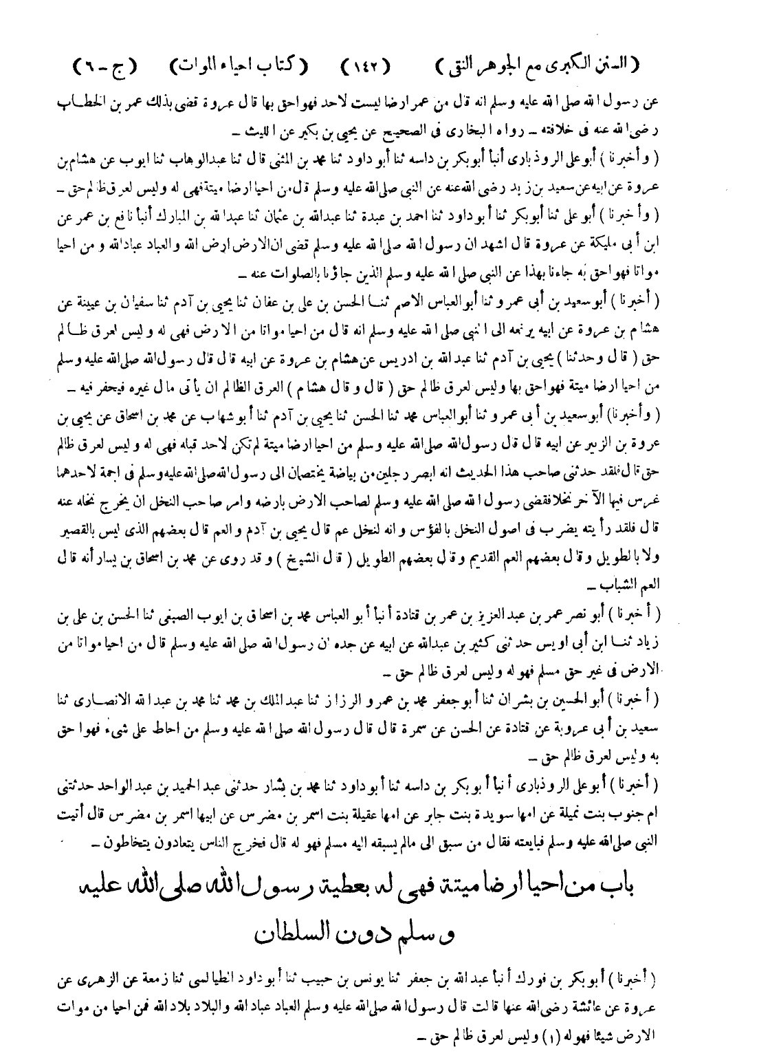 - باب من احيا ارضا ميتة فهى له بعطية رسول الله صلى الله عليه وسلم دون السلطان
