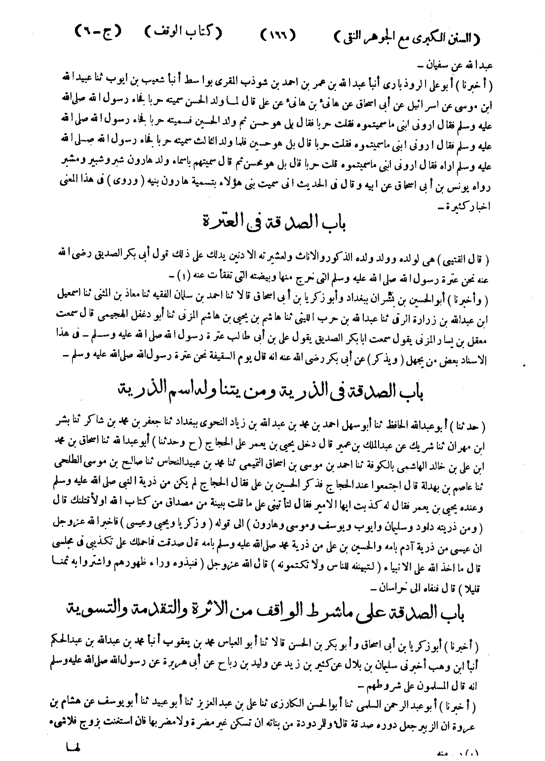 - باب الصدقة على ما شرط الواقف من الاثرة والتقدمة والتسوية