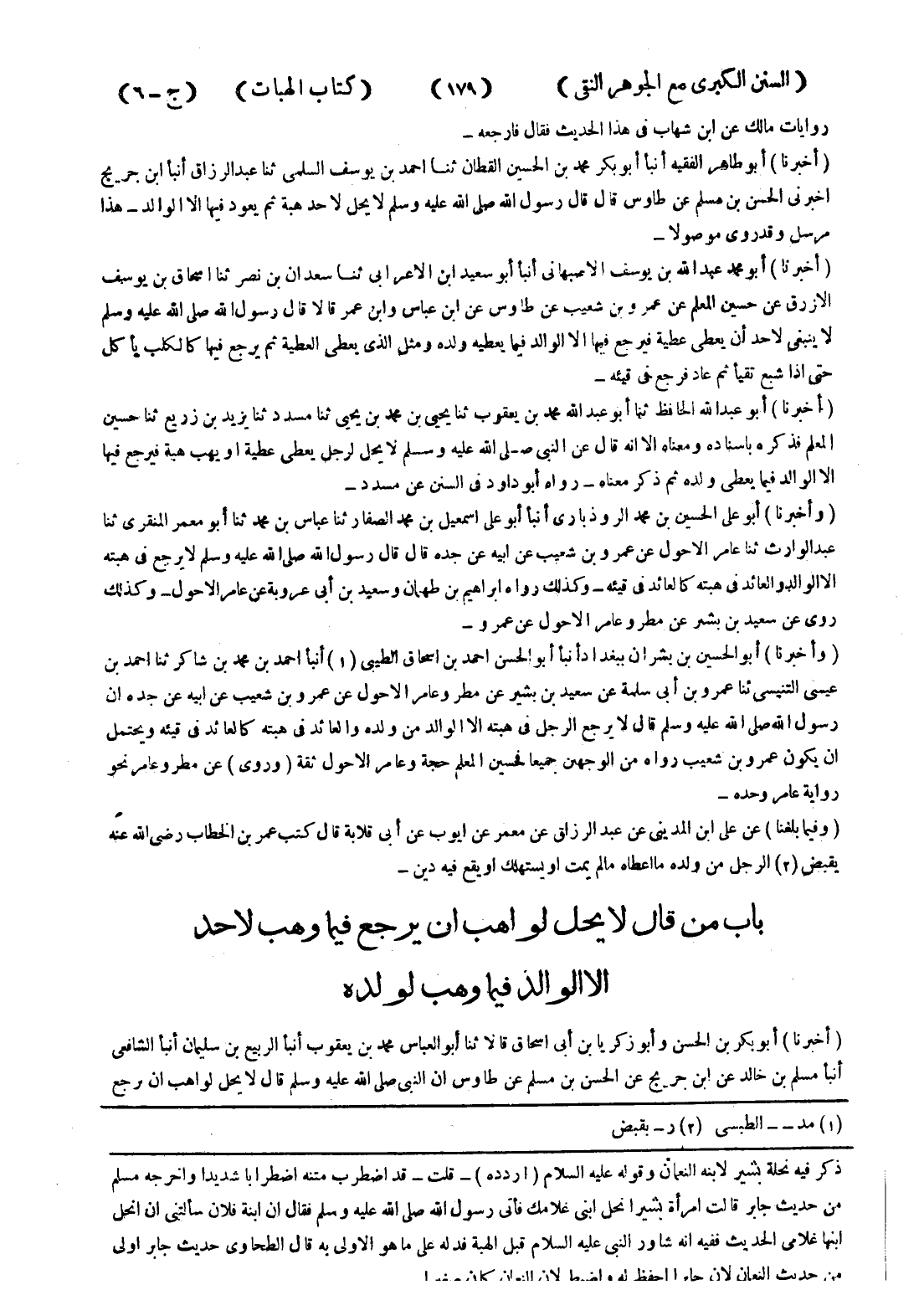 ذكر فيه نحلة بشير لابنه النعمان وقوله عليه السلام (اردده) - قلت - قد اضطرب متنه اضطرابا شديدا واخرجه مسلم من حديث جابر قالت امرأة بشيرا نحل ابني غلامك فأتى رسول الله صلى الله عليه وسلم فقال ان ابنة فلان سألتنى ان انحل ابنها غلامي الحديث ففيه انه شاور النبي عليه السلام قبل الهبة فدله على ما هو الاولى به قال الطحاوي حديث جابر اولى من حديث النعمان لان جابرا احفظ له واضبط لان النعمان كان صغيرا -