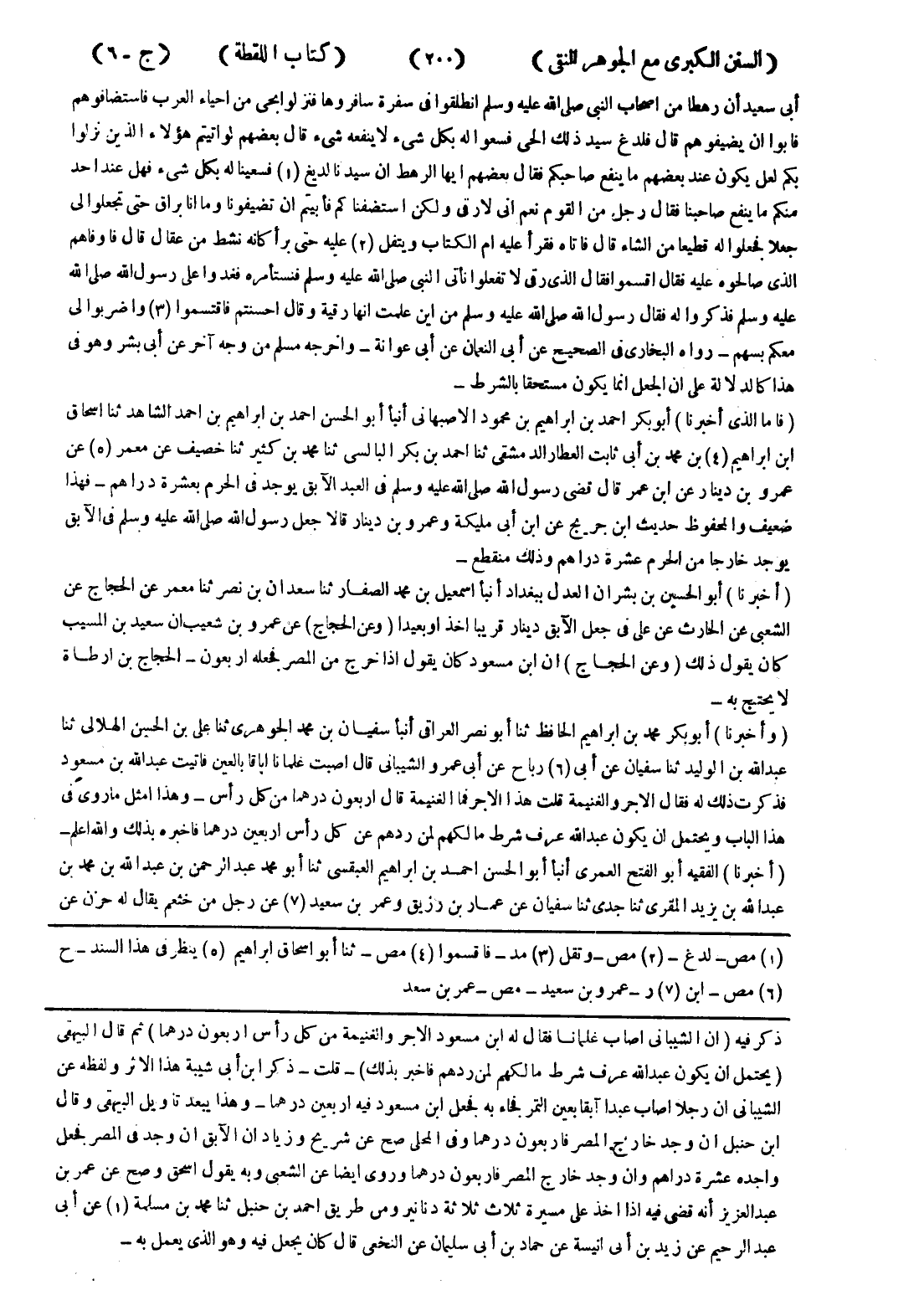 ذكر فيه (ان الشيباني اصاب غلمانا فقال له ابن مسعود الاجر والغنيمة من كل رأس اربعون درهما) ثم قال البيهقى
