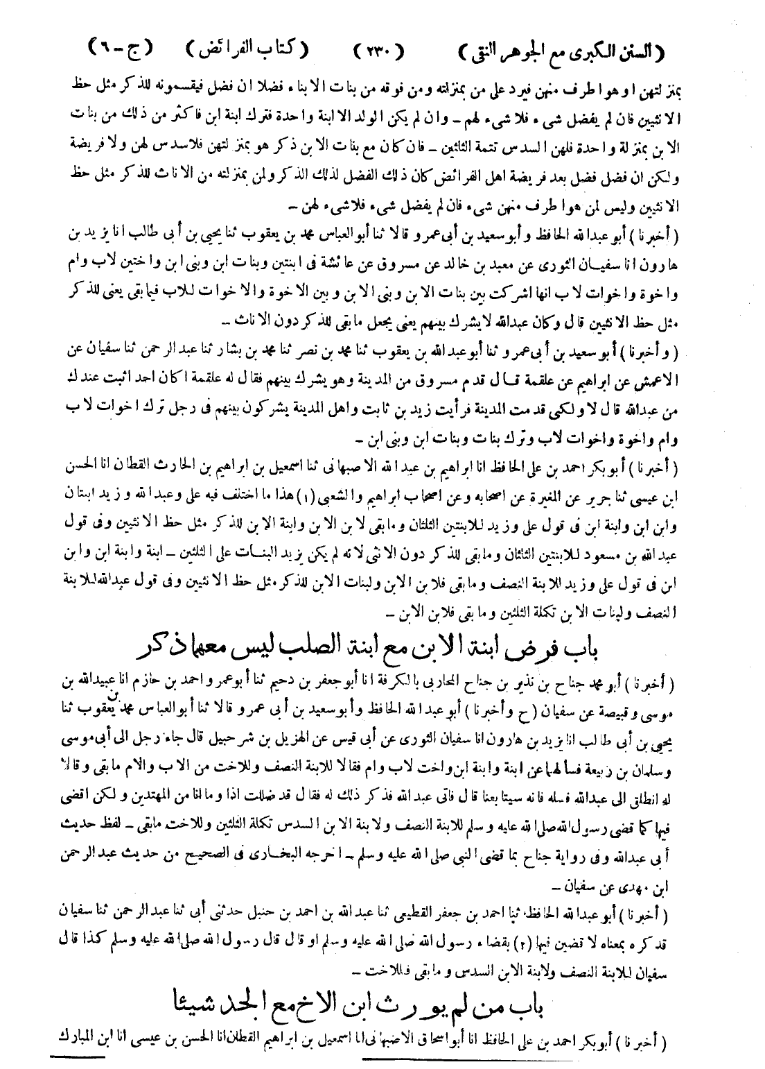 - باب فرض ابنة الابن مع الصلب ليس معهما ذكر