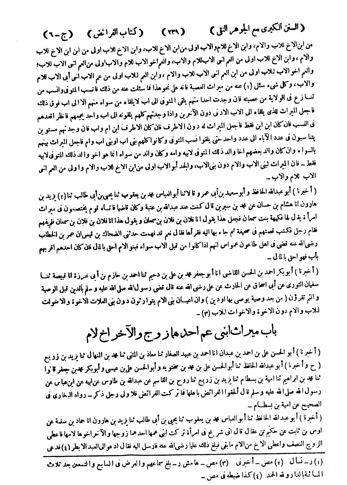 - (أخبرنا) أبو بكر احمد بن الحسن القاضى انا أبو جعفر محمد بن على بن دحيم ثنا احمد بن حازم بن أبى غرزة انا قبيصة ثنا سلمان الثوري عن أبى اسحاق عن الحارث عن على رضى الله عنه قال قضى رسول الله صلى الله عليه وسلم بالدين قبل الوصية وانتم تقرؤن (من بعد وصية يوصى بها أو دين) وان اعيان بنى الام يتوارثون دون بنى العلامات الاخوة الاخوات للاب والام دون الاخوة والاخوات للاب (3)