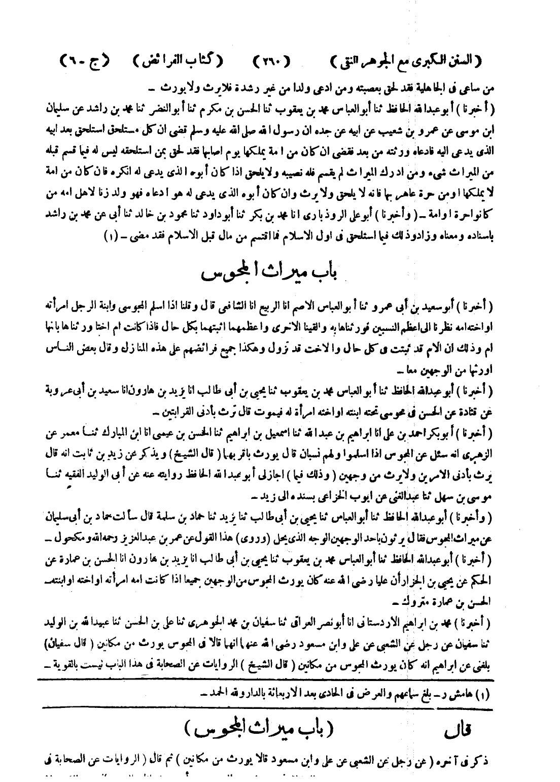 قال (باب ميراث المجوس) ذكر في آخره (عن رجل عن الشعبى عن على وابن مسعود قالا يورث من مكانين) ثم قال (الروايات عن الصحابة في هذا الباب ليست بالقوية) - قلت - روى عبد الرزاق في مصنفه عن الثوري عن أبى سهل اظنه البرسانى عن الشعبى ان