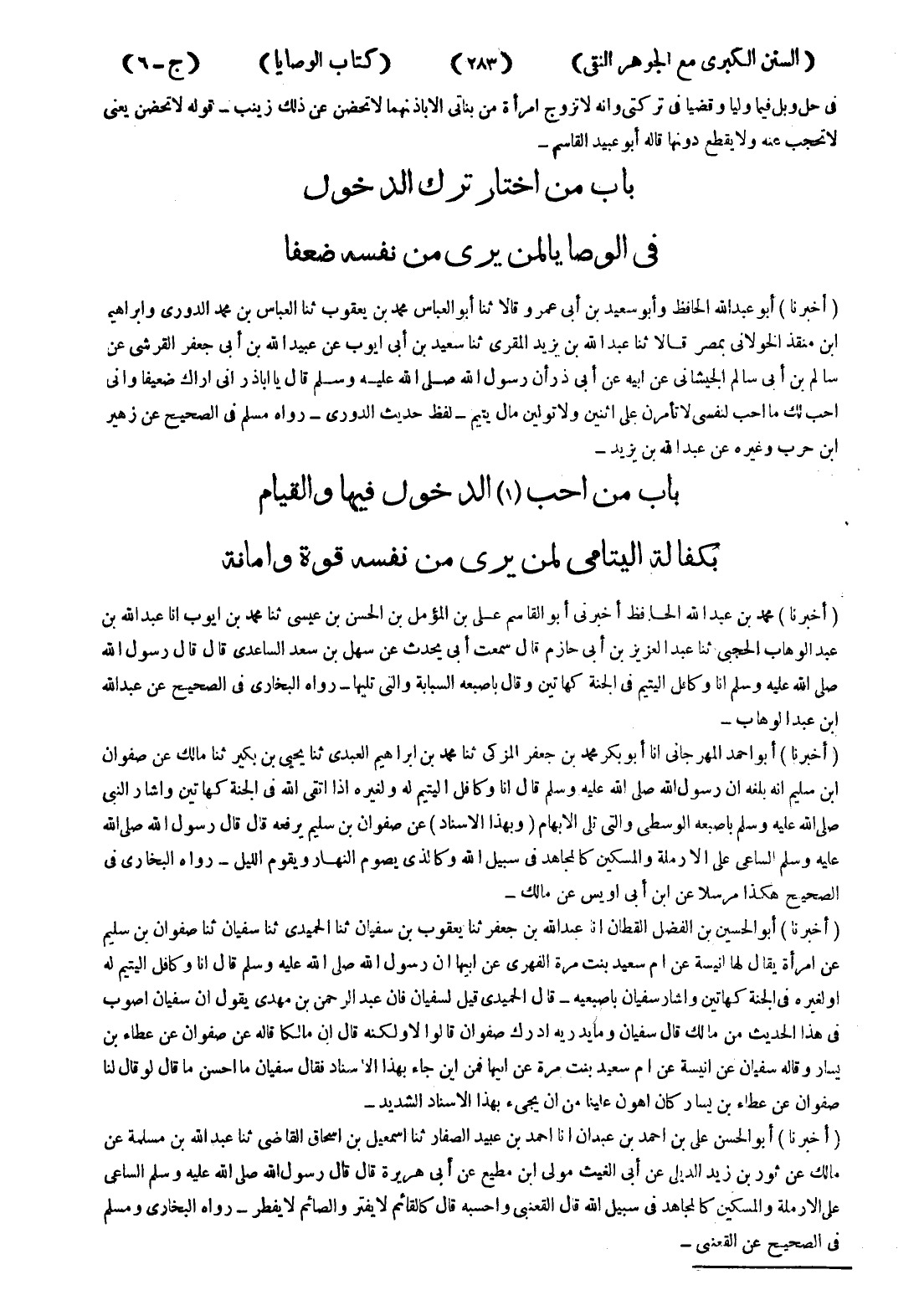 - باب من احب (1) الدخول فيها والقيام بكفالة اليتامى لمن يرى من نفسه قوة وامانة