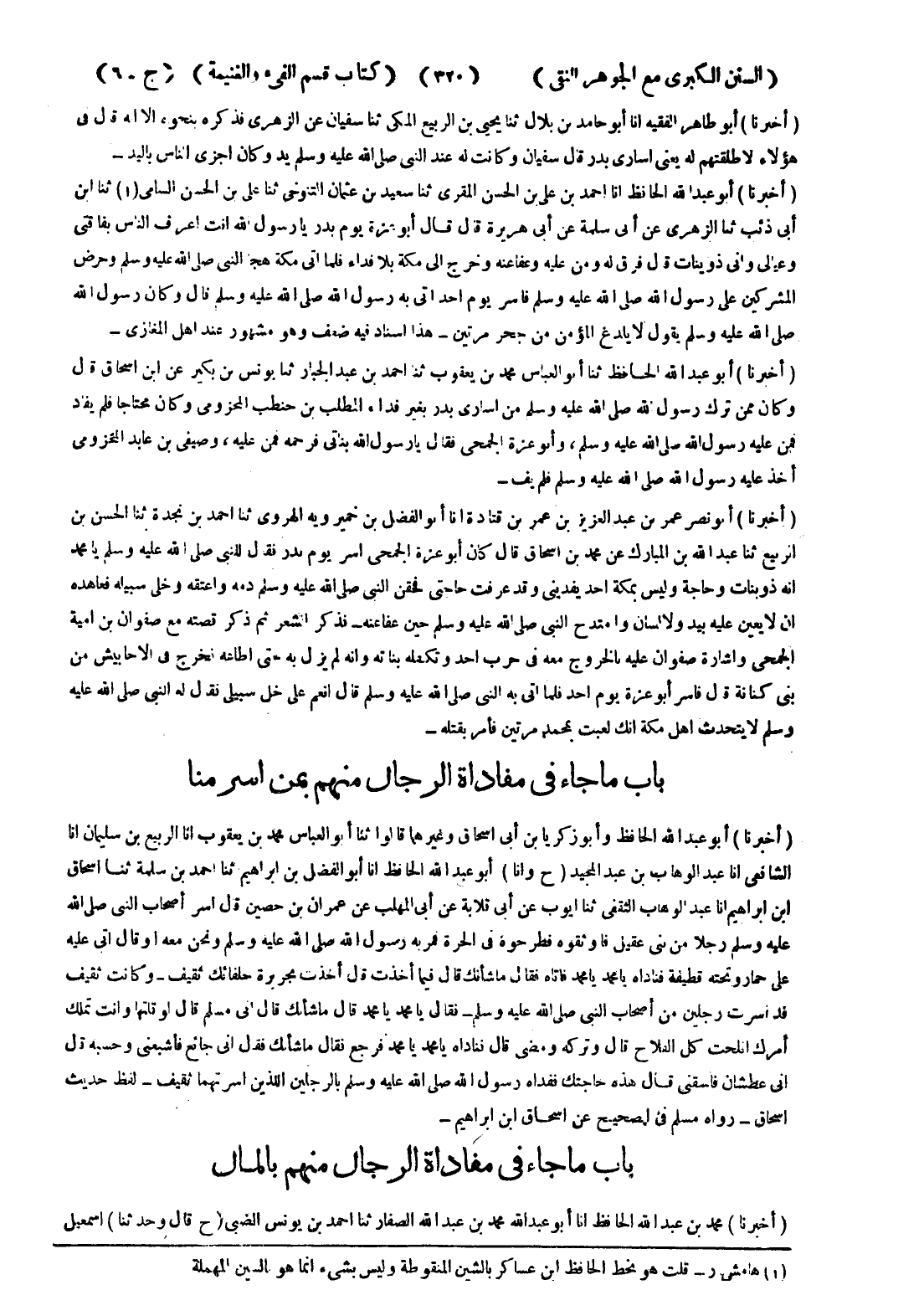 - باب ما جاء في مفاداة الرجال منهم بالمال