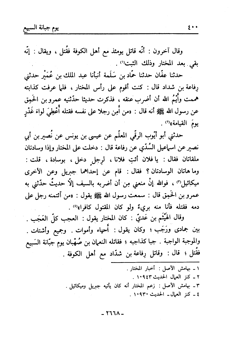 [3] بهامش الأصل: زعم المختار أنه كان يأتيه جبريل وميكائيل.