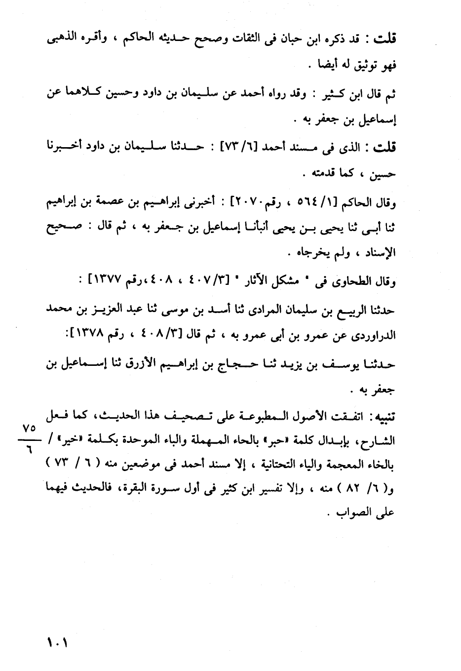 ثم قال ابن كثير: وقد رواه أحمد عن سليمان بن داود وحسين كلاهما عن إسماعيل بن جعفر به.