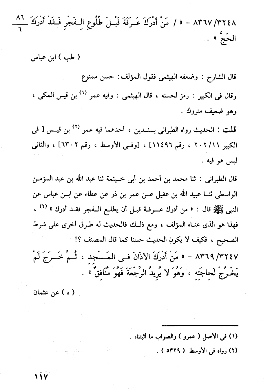 3248/ 8367 - "مَنْ أَدْرَكَ عَرَفَةَ قَبْلَ طُلُوع الفَجْرِ فَقَدْ أَدْرَكَ الحَجَّ".