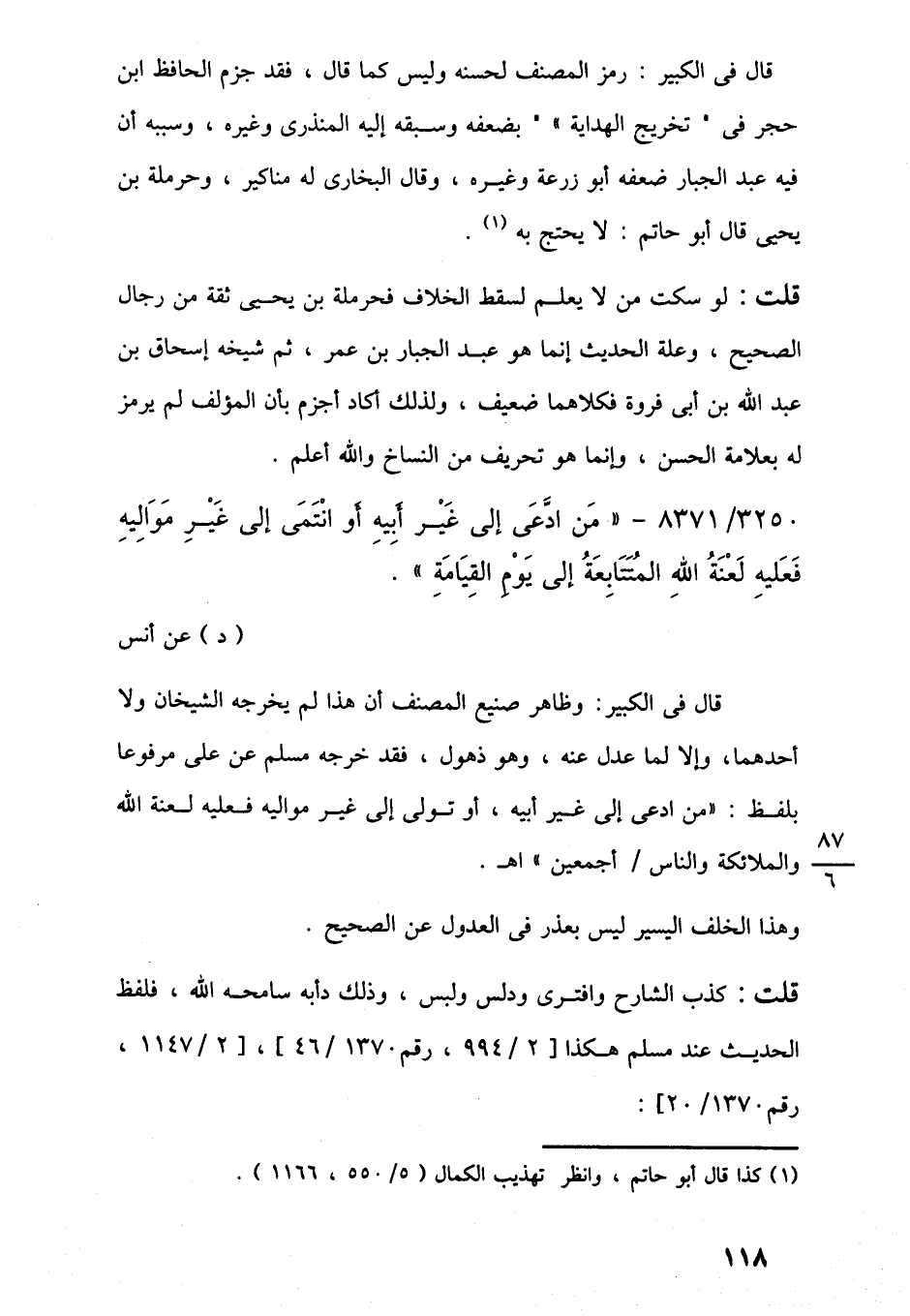 3250/ 8371 - "مَن ادَّعَى إلى غَيْر أَبِيهِ أو انْتَمَى إلى غَيْرِ مَوَالِيهِ فَعَليهِ لَعْنَةُ اللَّهِ المُتَتَابِعَةُ إلى يَوْمِ القِيَامَةِ".