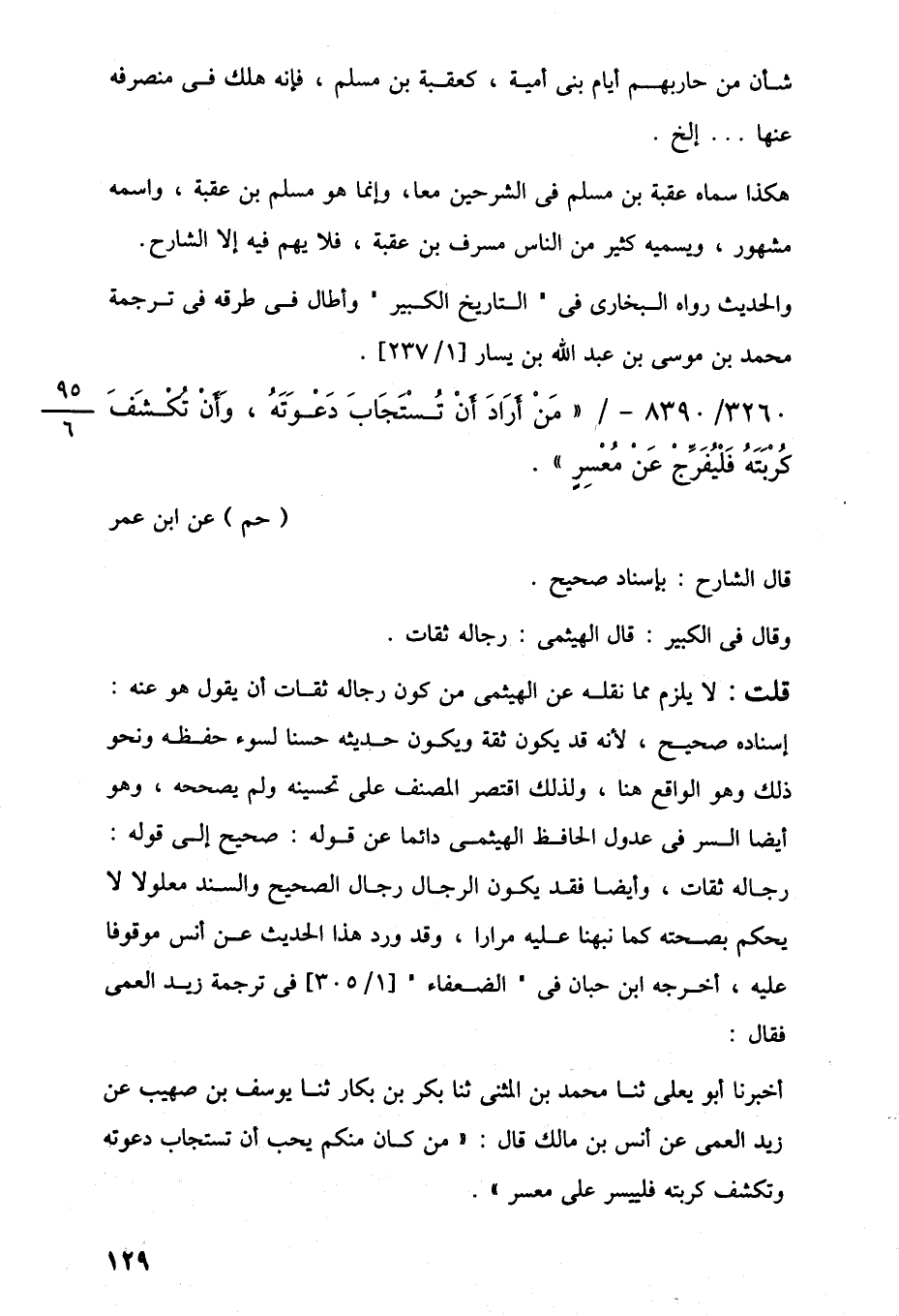 3260/ 8390 - "مَنْ أَرَادَ أَنْ تُسْتَجَابَ دَعْوَتَهُ، وَإِنْ تُكْشَفَ كُرْبَتَهُ فَلْيُفَرِّجْ عَنْ مُعْسِرٍ".