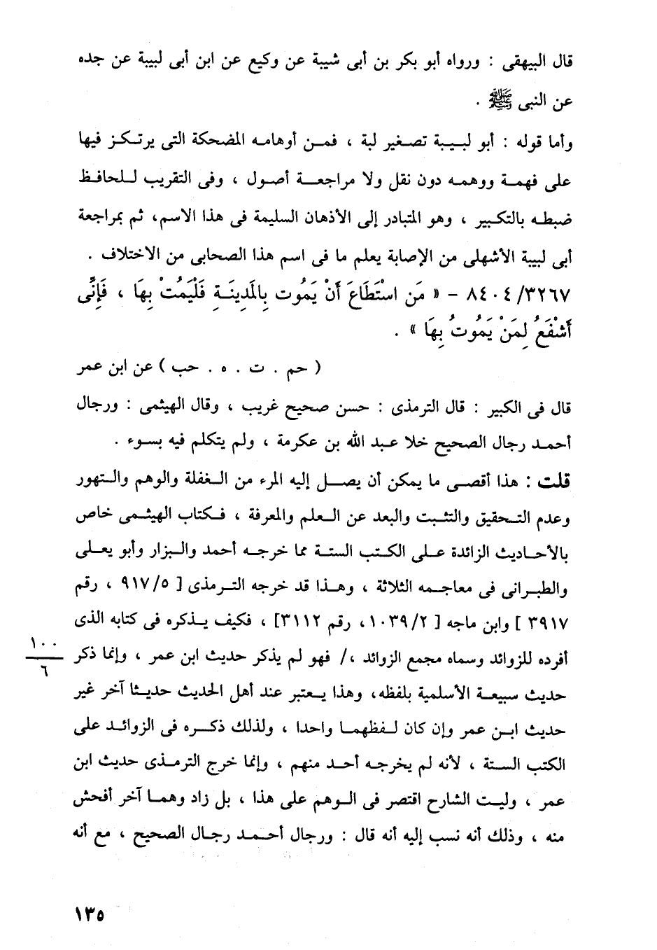 قلت: هذا أقصى ما يمكن أن يصل إليه المرء من الغفلة والوهم والتهور وعدم التحقيق والتثبت والبعد عن العلم والمعرفة، فكتاب الهيثمى خاص بالأحاديث الزائدة على الكتب الستة مما خرجه أحمد والبزار وأبو يعلى والطبرانى في معاجمه الثلاثة، وهذا قد خرجه الترمذى [5/ 917، رقم 3917] وابن ماجه [2/ 1039، رقم 3112]، فكيف يذكره في كتابه الذي أفرده للزوائد وسماه مجمع الزوائد، فهو لم يذكر حديث ابن عمر، وإنما ذكر حديث سبيعة الأسلمية بلفظه، وهذا يعتبر عند أهل الحديث حديثًا آخر غير حديث ابن عمر وإن كان لفظهما واحدا, ولذلك ذكره في الزوائد على الكتب الستة؛ لأنه لم يخرجه أحد منهم، وإنما خرج الترمذى حديث ابن عمر، وليت الشارح اقتصر في الوهم على هذا، بل زاد وهما آخر أفحش منه، وذلك أنه نسب إليه أنه قال: ورجال أحمد رجال الصحيح، مع أنه