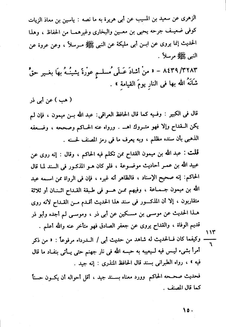 3283/ 8439 - "مَنْ أشادَ عَلَى مُسلمٍ عوْرةً يشينُهُ بهَا بغير حقٍّ شَانَهُ اللَّه بها في النَّارِ يومَ القيامةِ".