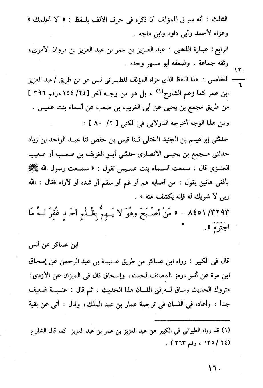(¬1) قد رواه الطبرانى في الكبير عن عبد العزيز بن عمر بن عبد العزيز كما قال الشارح (24/ 135، رقم 363).