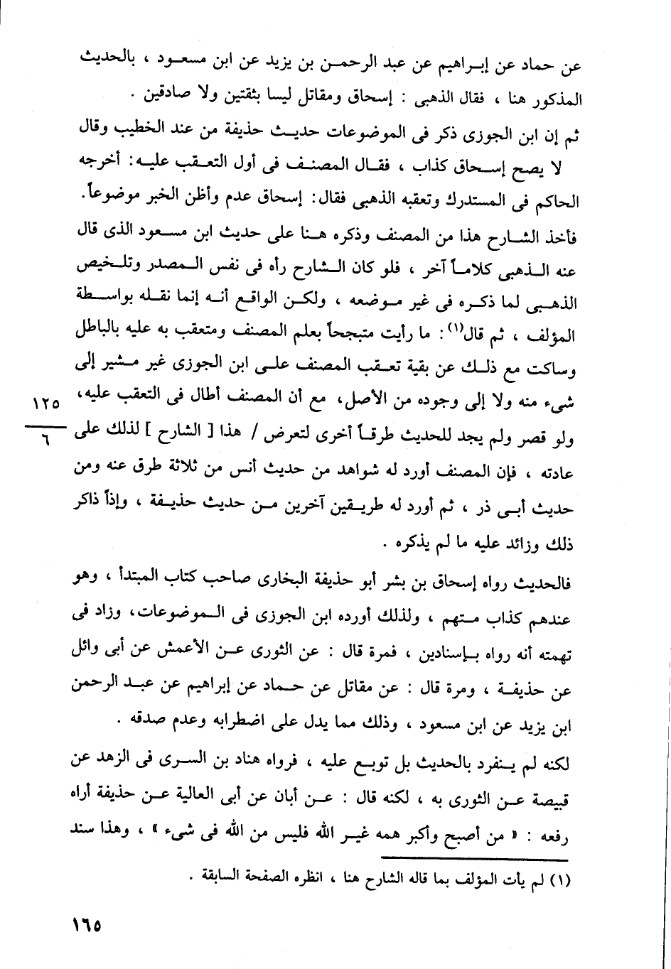 عن حماد عن إبراهيم عن عبد الرحمن بن يزيد عن ابن مسعود، بالحديث المذكور هنا، فقال الذهبى: إسحاق ومقاتل ليسا بثقتين ولا صادقين.