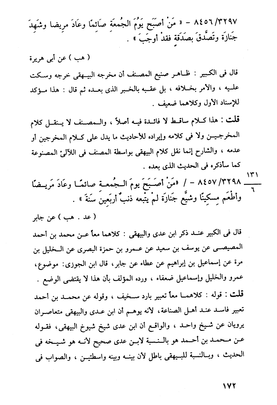 3297/ 8456 - "مَنْ أَصَبَحِ يَوُمَ الجُمعَةِ صَائِمًا وعَادَ مرِيضا وشَهِدَ جَنازَة وتَصَّدقَ بصَدَقةٍ فقدْ أوجَبَ".