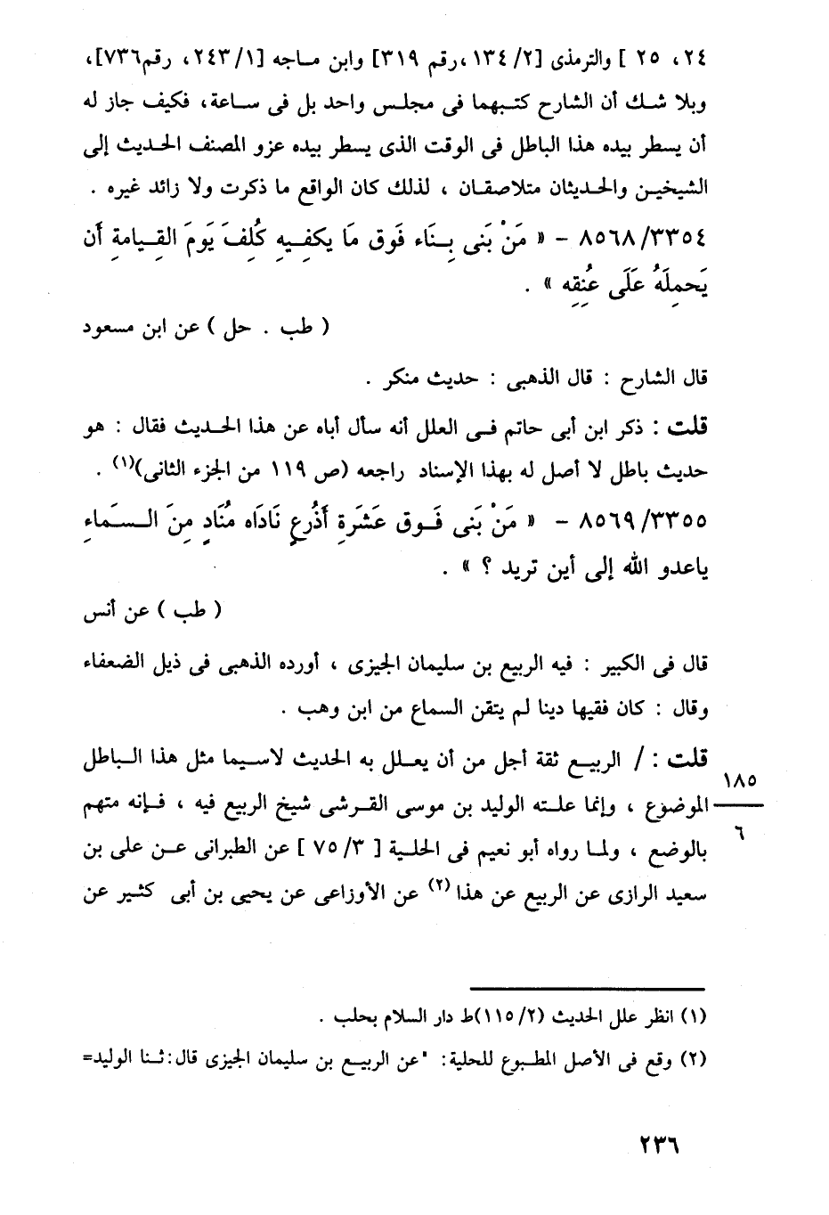 3355/ 8569 - "مَنْ بَنى فَوق عَشَرةِ أَذُرعٍ نَادَاه مُنَادٍ مِنَ السَماءِ يا عدو اللَّه إلى أين تريد؟ ".