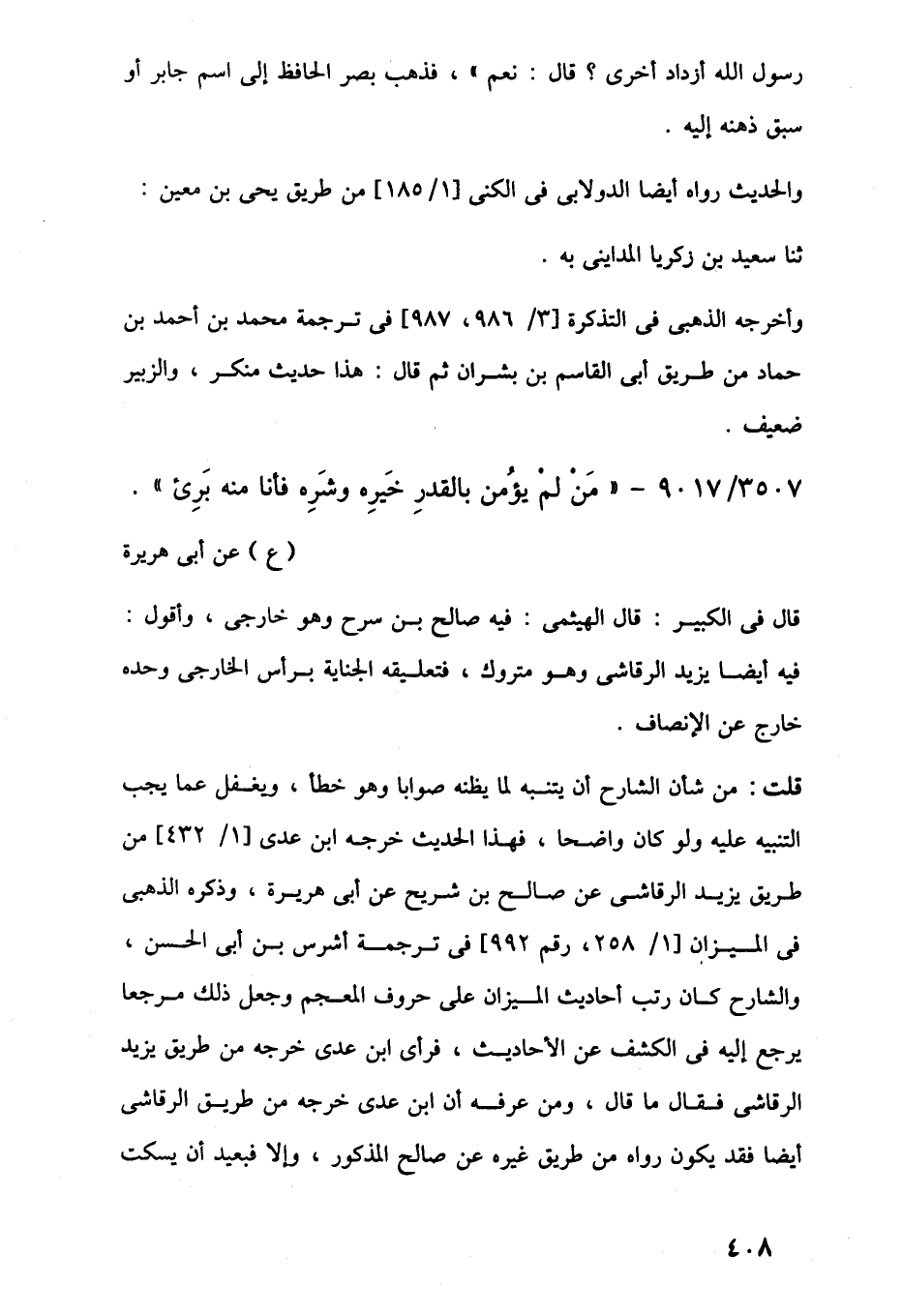 3507/ 9017 - "مَنْ لمْ يؤُمن بالقدرِ خَيرِه وشَرِه فأنا منه بَرِئ".