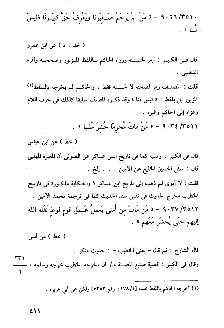 3510/ 9026 - "مَنْ لَمْ يَرحَمْ صَغِيَرنا ويَعْرِفْ حَقَّ كبِيَرنَا فليسَ منَّا".