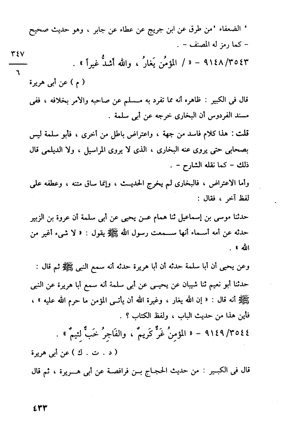 3543/ 9148 - "المؤمُن يَغارُ، واللَّه اشدُّ غيرًا".