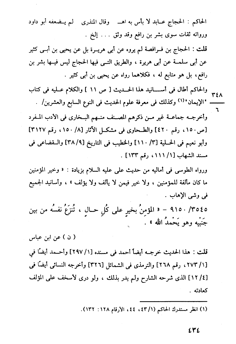 والحاكم أطال في أسانيد هذا الحديث [ص 11] والكلام عليه في كتاب "الإيمان" (¬1) وكذلك في معرفة علوم الحديث في النوع السابع والعشرين.