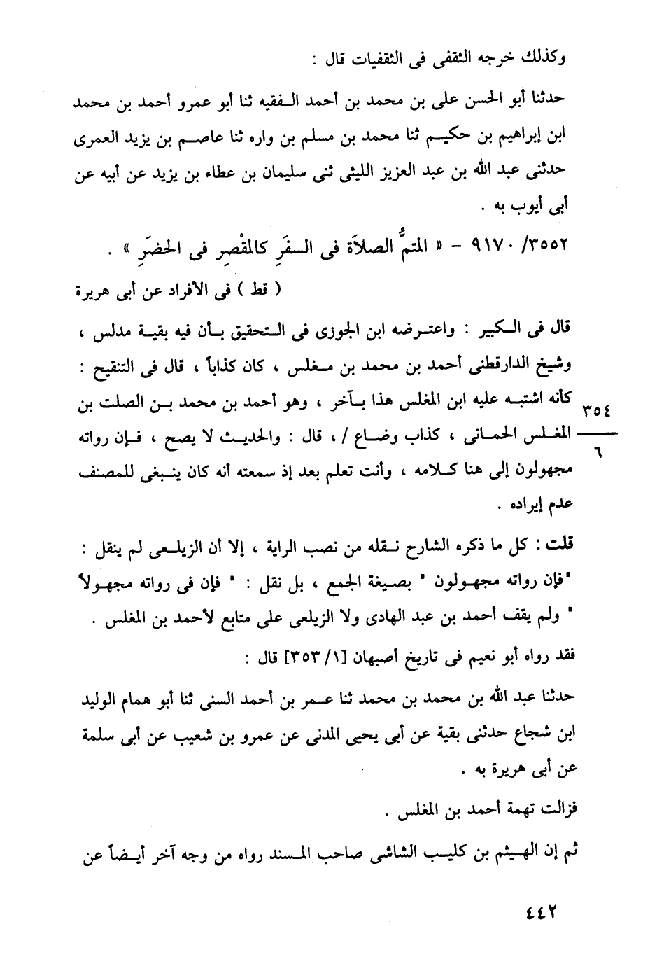3555/ 9170 - "المتمُّ الصلَاة في السفَرِ كالمقْصِر في الحضَرِ".