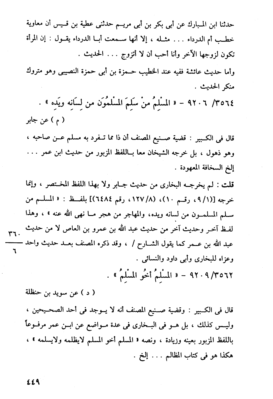 3564/ 9206 - "المسْلِمُ منْ سَلِمَ المسْلمُوَن من لِسَانِه ويَدِه".