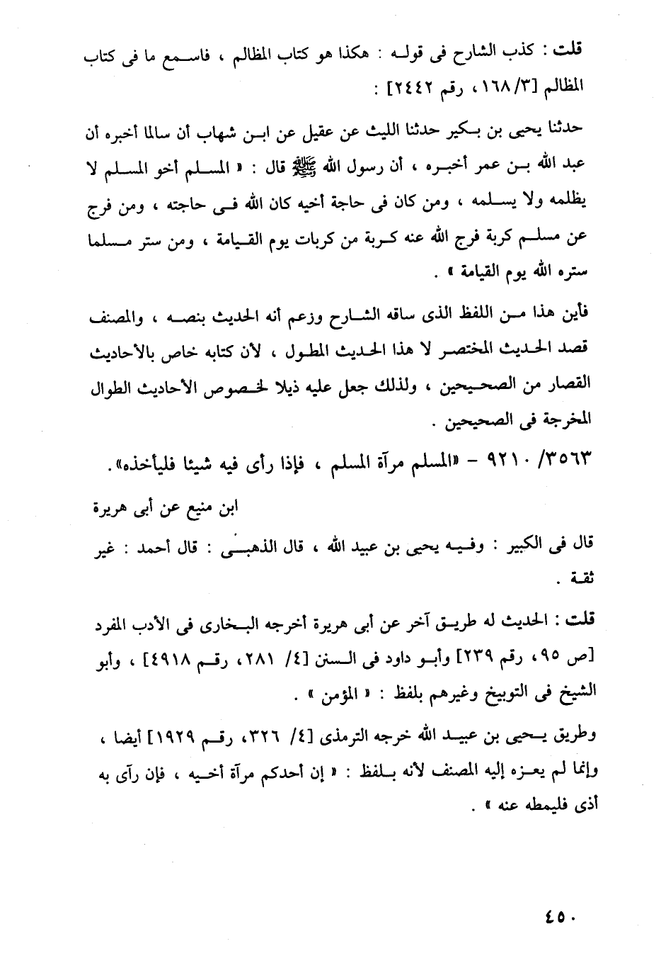 3566/ 9210 - "المسلم مرآة المسلم، فإذا رأى فيه شيئًا فليأخذه".