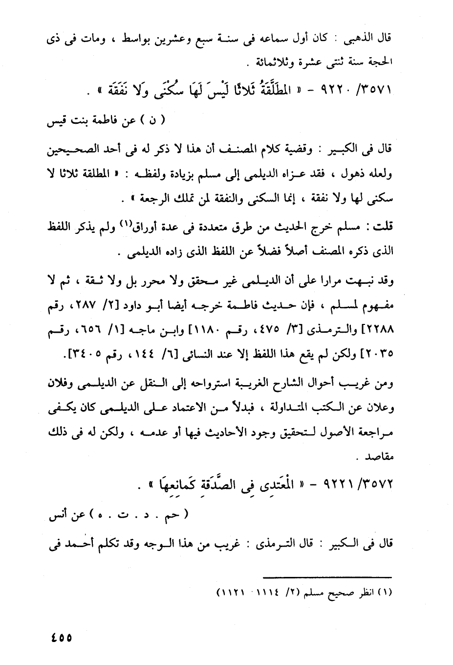 3571/ 9220 - "المطَلَّقَةُ ثَلاثًا لَيْسَ لَهَا سُكْنَى وَلا نَفَقَة".