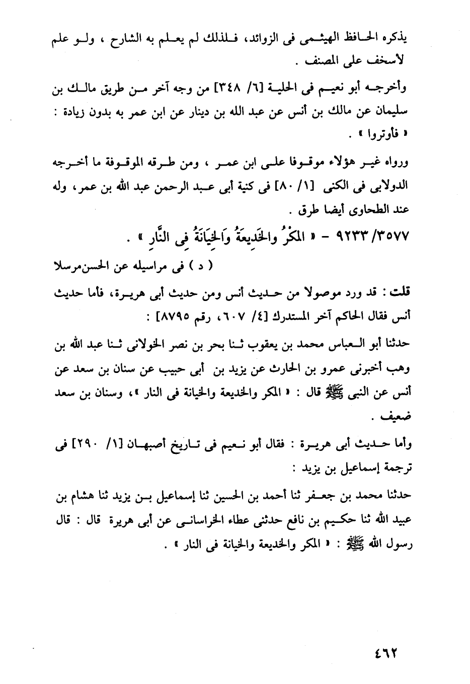 3577/ 9233 - "المكْرُ والخَدِيعَةُ وَالخِيَانَةُ فِي النَّارِ".