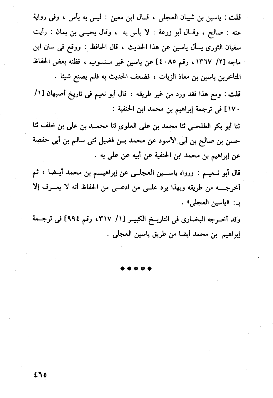 قال أبو نعيم: ورواه ياسين العجلى عن إبراهيم بن محمد أيضًا، ثم أخرجه من طريقه وبهذا يرد على من ادعى من الحفاظ أنه لا يعرف إلا بـ: "ياسين العجلى".