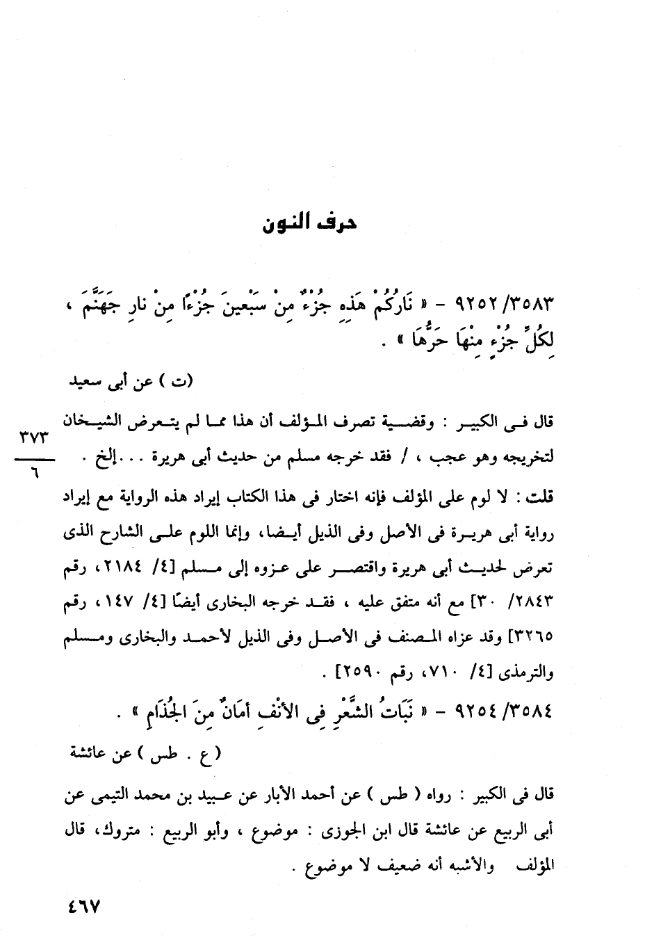 3583/ 9252 - " نَارُكُمْ هَذِهِ جُزْءٌ مِنْ سَبْعينَ جُزْءًا مِنْ نارِ جَهَنَّمَ، لِكُلِّ جُزْءٍ مِنْهَا حَرُّهَا".