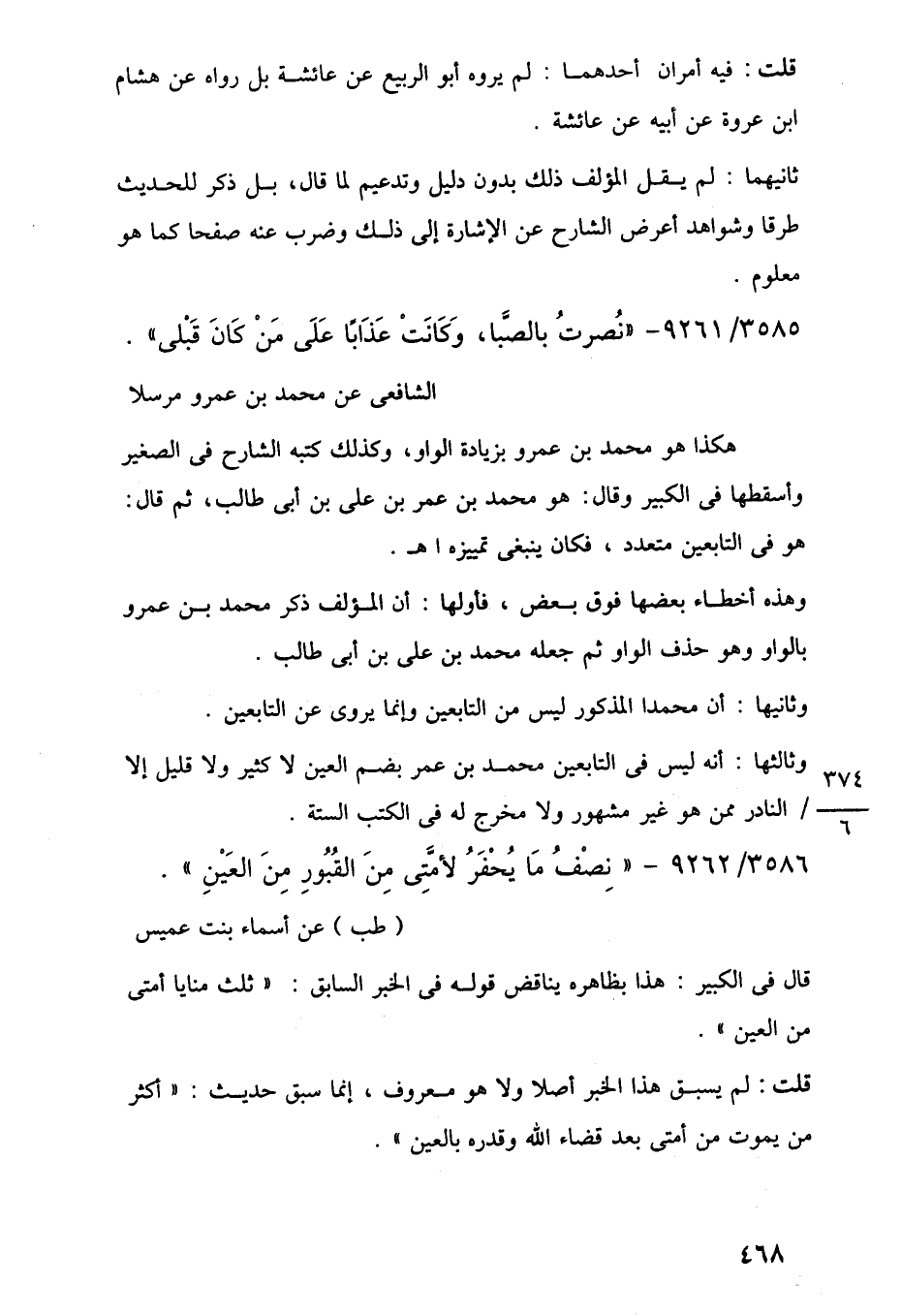 3586/ 9262 - "نِصْفُ مَا يُحْفَرُ لأمَّتِى مِنَ القُبُورِ مِنَ العَيْنِ".