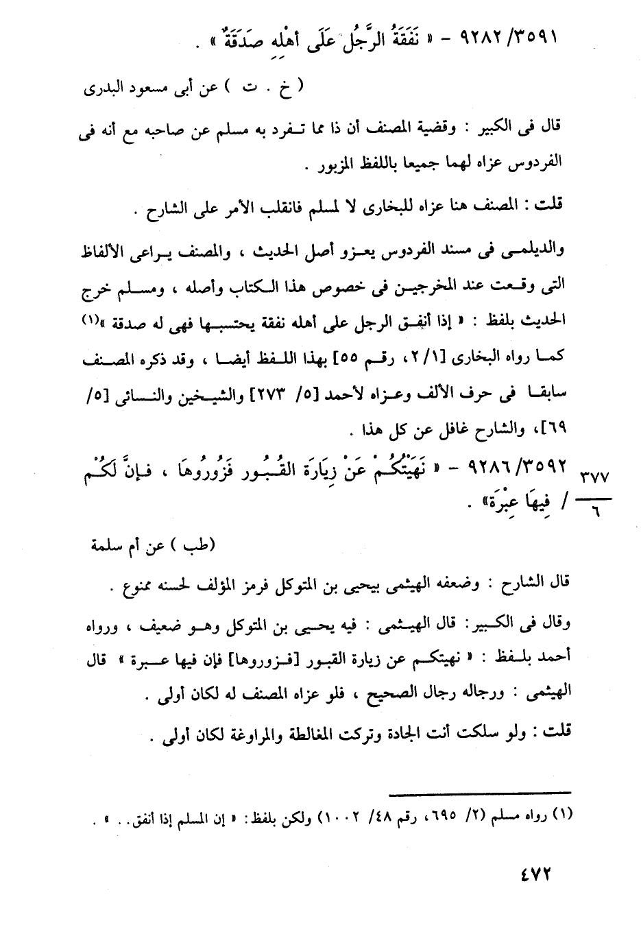3591/ 9282 - "نَفَقَةُ الرَّجلُ عَلَى أهْلِهِ صَدَقَةٌ".