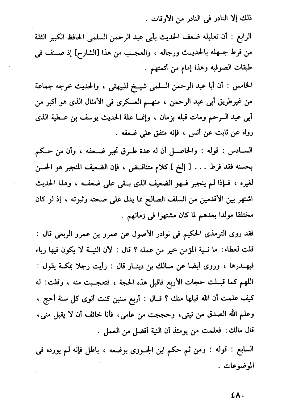 الرابع: أن تعليله ضعف الحديث بأبى عبد الرحمن السلمى الحافظ الكبير الثقة من فرط جهله بالحديث ورجاله، والعجب من هذا [الشارح] إذ صنف في طبقات الصوفيه وهذا إمام من أئمتهم.