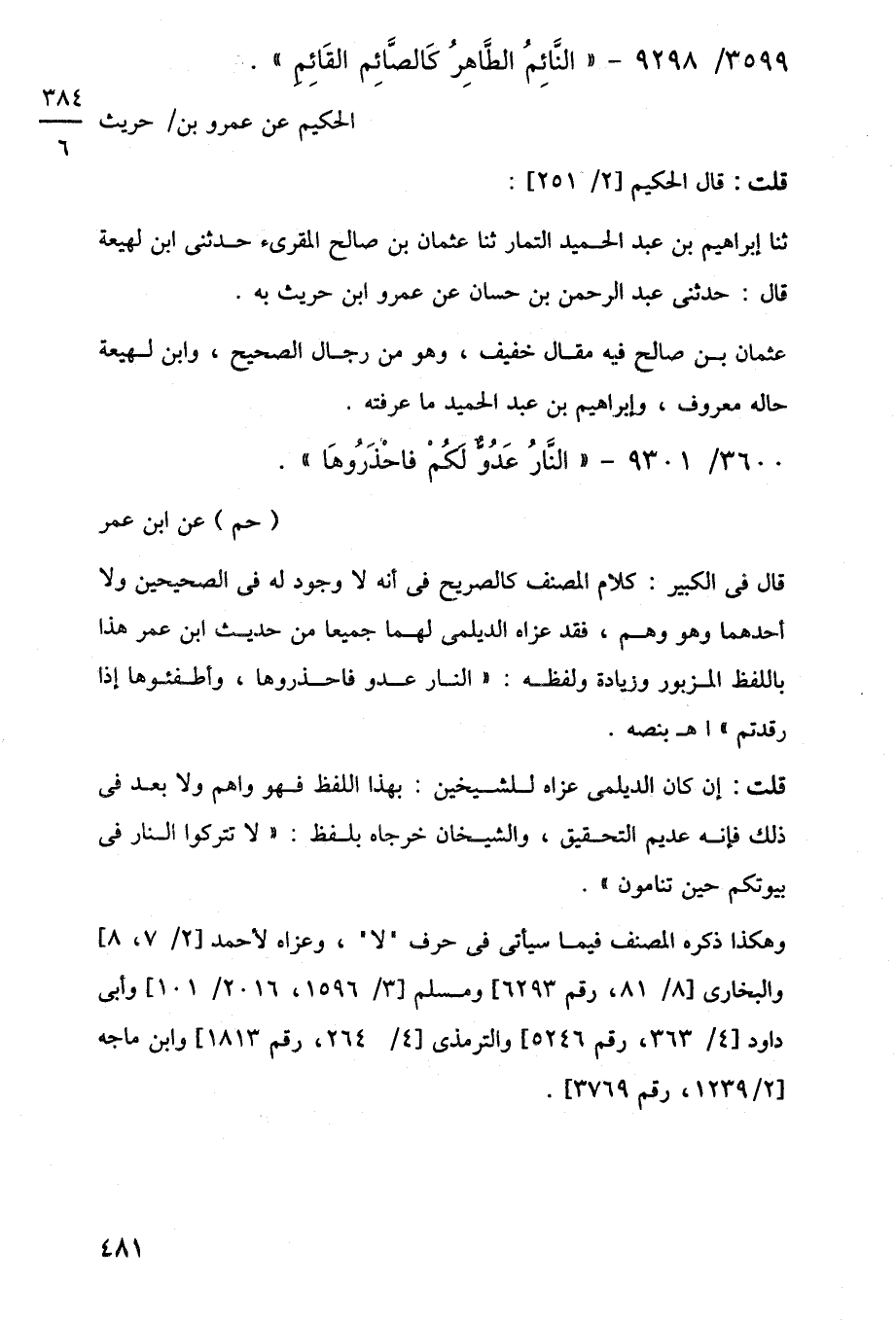 3599/ 9298 - "النَّائِمُ الطَّاهِرُ كَالصَّائِم القَائِمِ".
