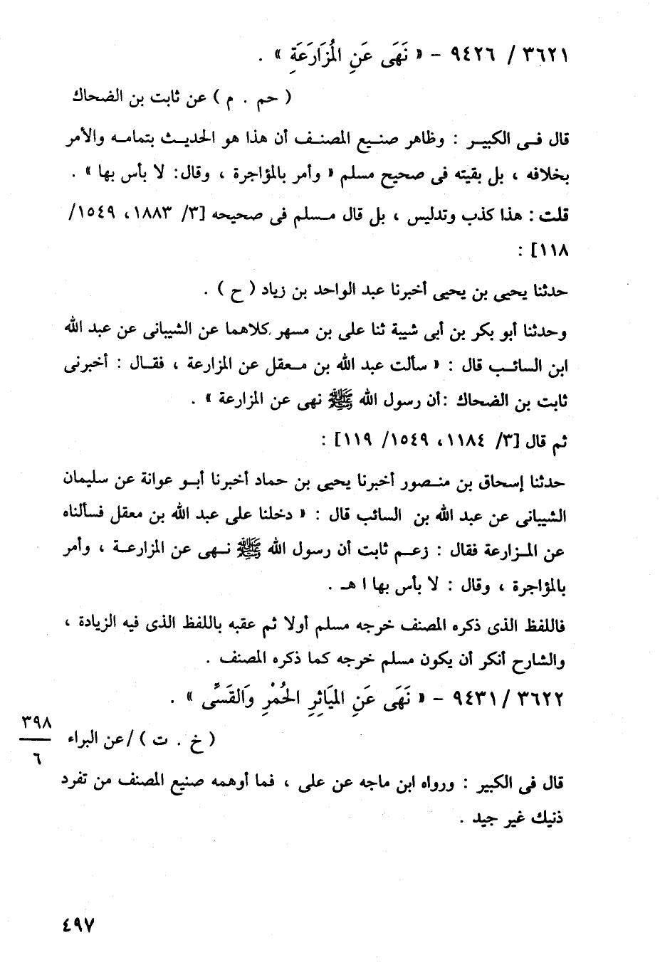 3621/ 9426 - "نَهَى عَنِ المُزَارَعةِ".