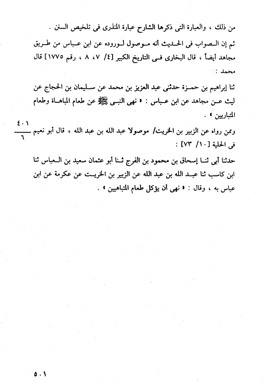 ثنا إبراهيم بن حمزة حدثنى عبد العزيز بن عحمد عن سليمان بن الحجاج عن ليث عن مجاهد عن ابن عباس: "نهى النبي -صلى اللَّه عليه وسلم- عن طعام المباهاة وطعام المتبارين".
