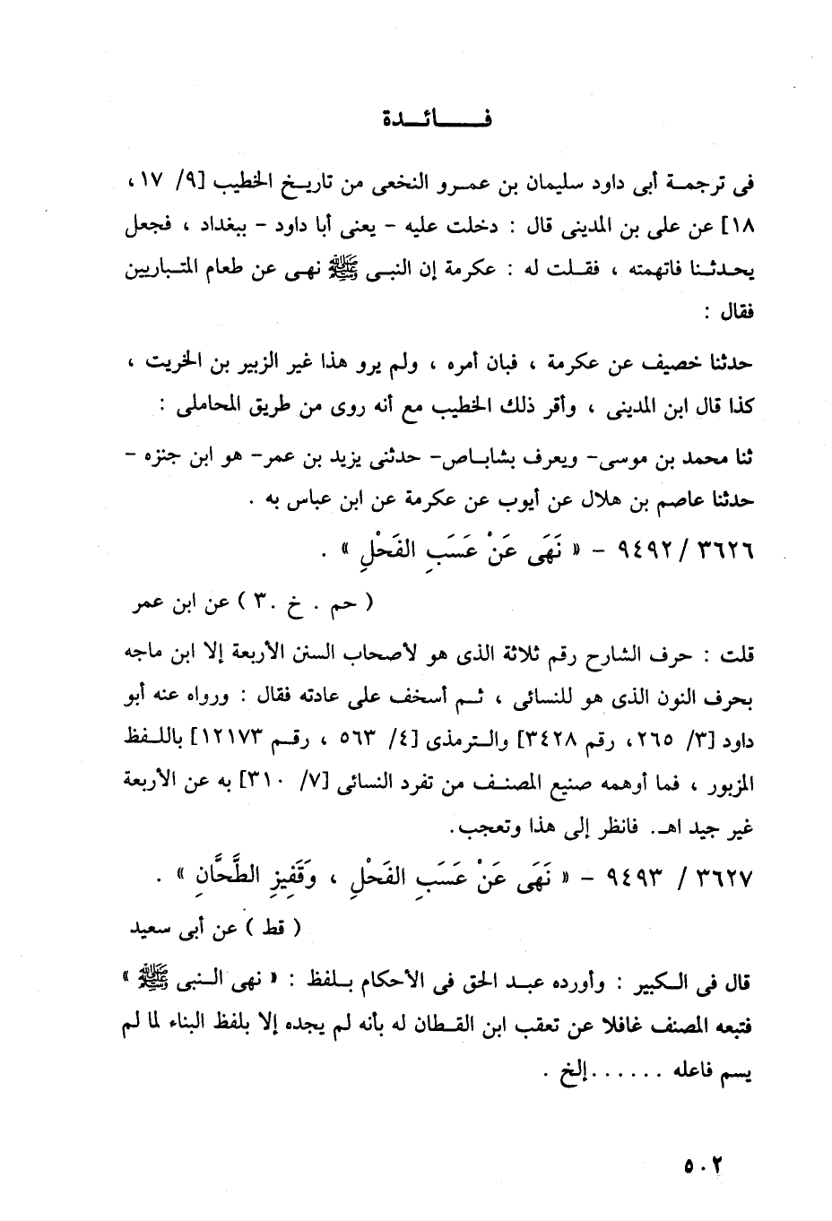 3626/ 9492 - "نَهَى عَنْ عَسَبِ الفَحْلِ".