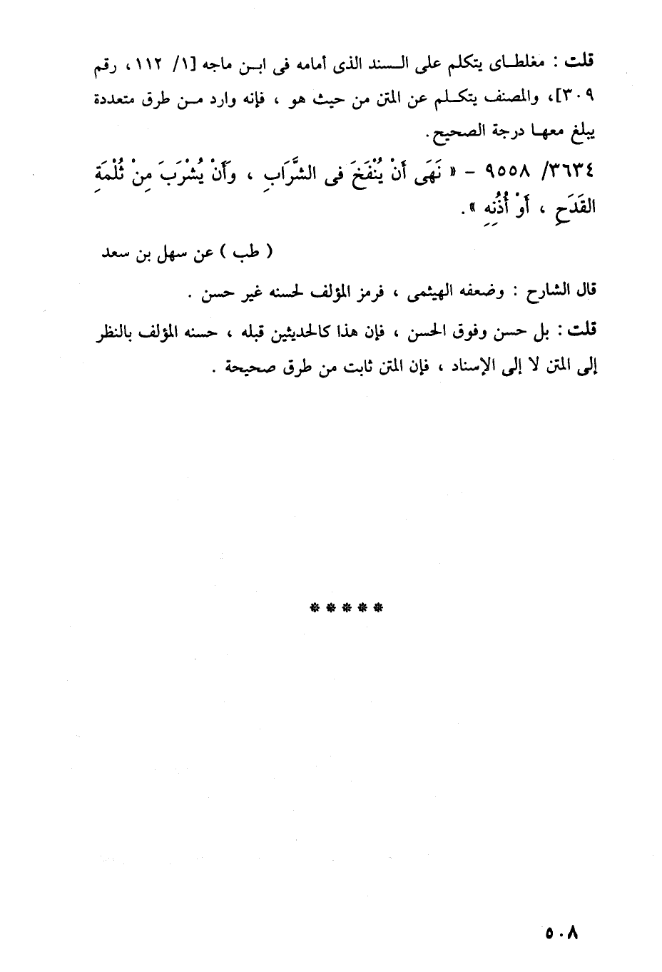 قلت: مغلطاى يتكلم على السند الذي أمامه في ابن ماجه [1/ 112، رقم 309]، والمصنف يتكلم عن المتن من حيث هو، فإنه وارد من طرق متعددة يبلغ معها درجة الصحيح.