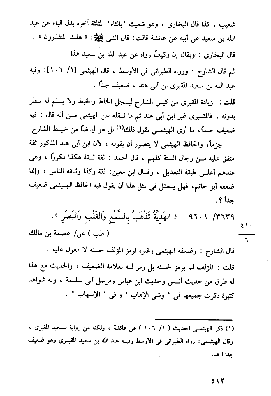 ثم قال الشارح: ورواه الطبرانى في الأوسط، قال الهيثمى [1/ 106]: وفيه عبد اللَّه بن سعيد المقبرى بن أبي هند، ضعيف جدًا.