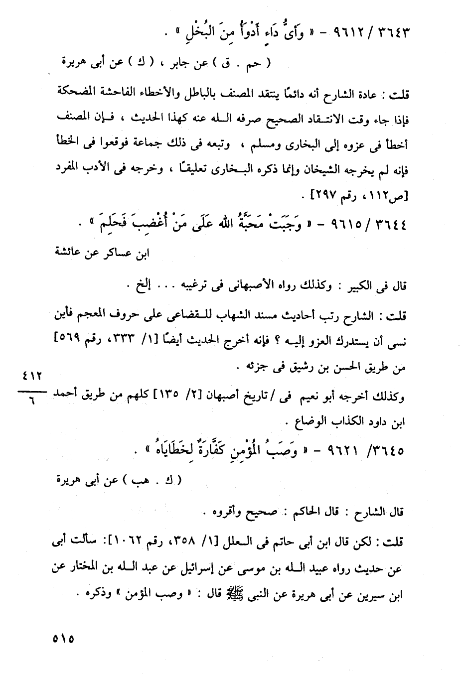 3645/ 9621 - "وَصَبُ المُؤْمِنِ كَفَّارَة لِخَطَايَاهُ".