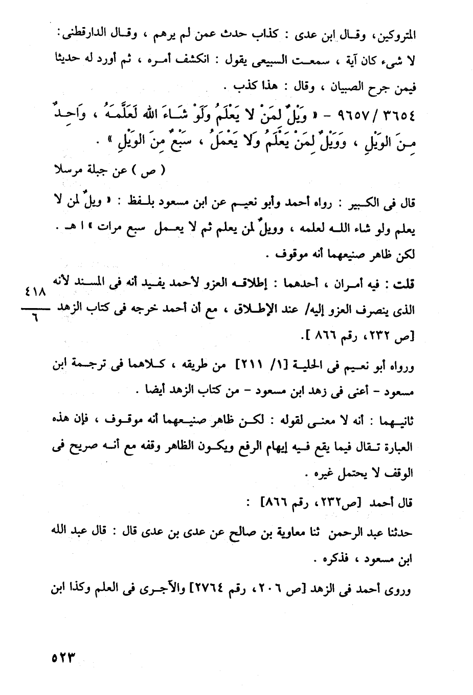 وروى أحمد في الزهد [ص 206، رقم 2764] والآجرى في العلم وكذا ابن