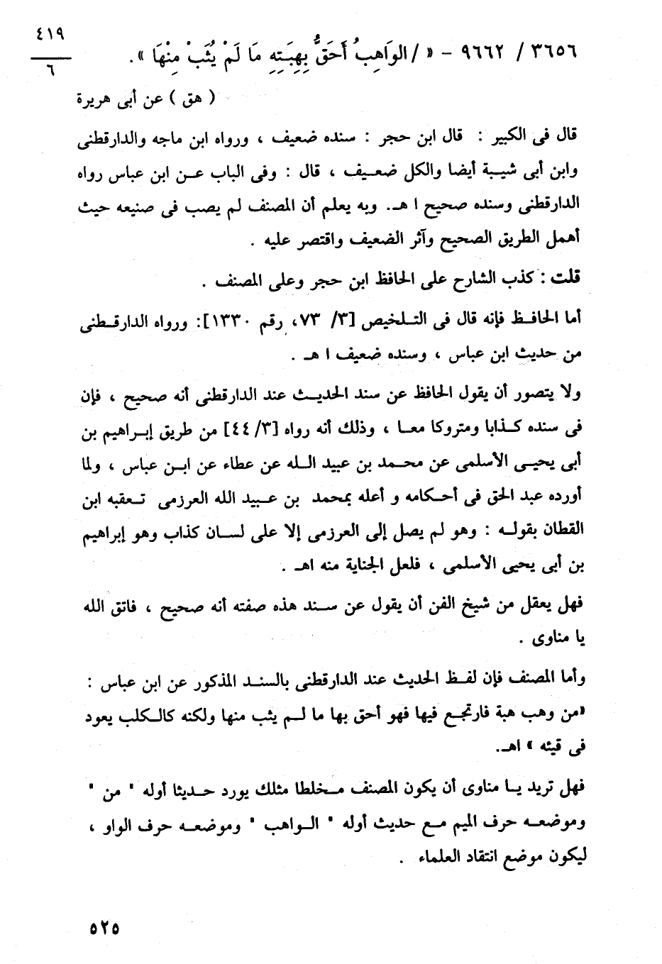 3656/ 9662 - "الوَاهِبُ أَحَقُّ بِهِبَتِهِ مَا لَمْ يُثَبْ مِنْهَا".
