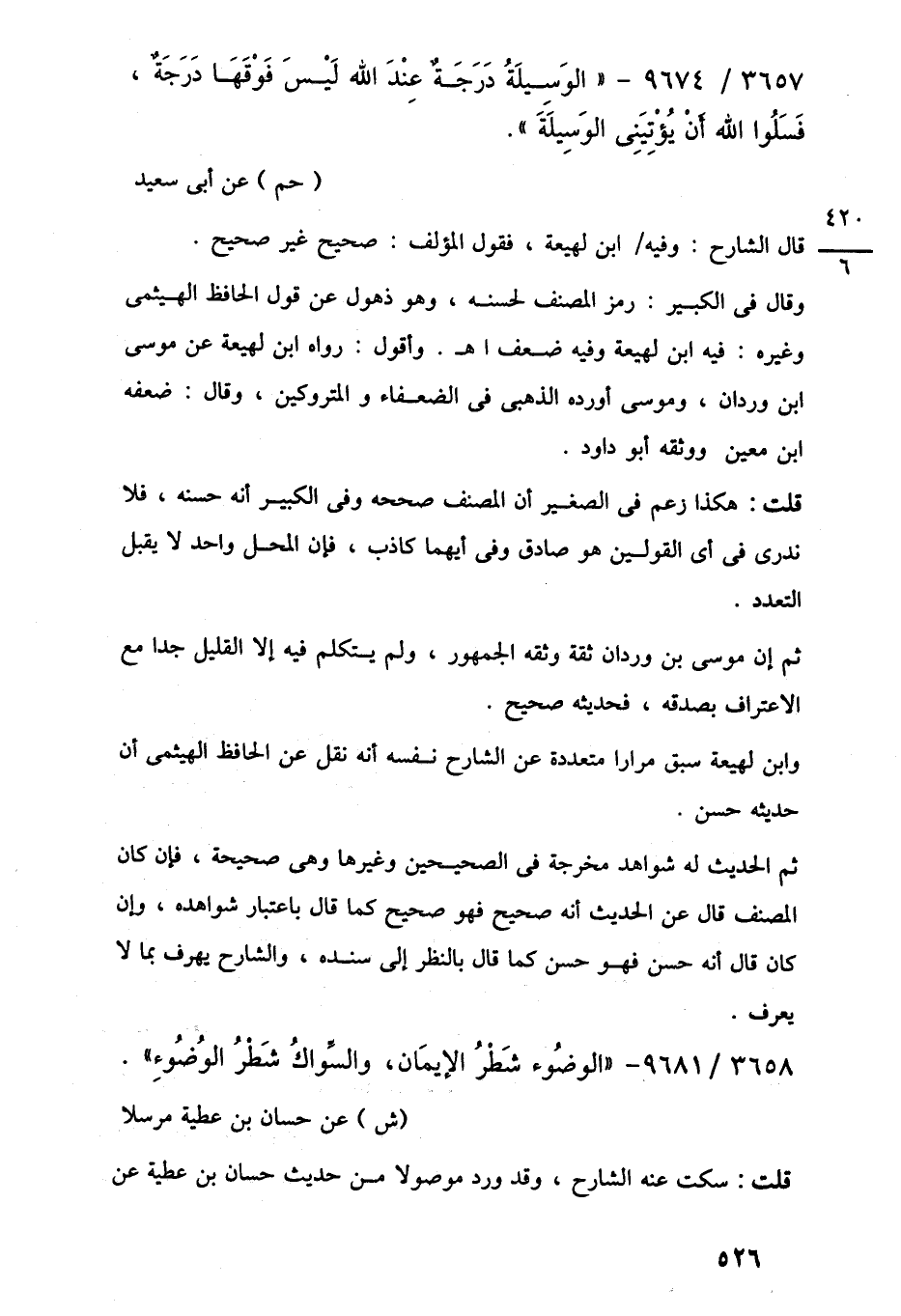 3658/ 9681 - "الوضُوء شَطْرُ الإيمَان، والسِّواكُ شَطْرُ الوُضُوءِ".