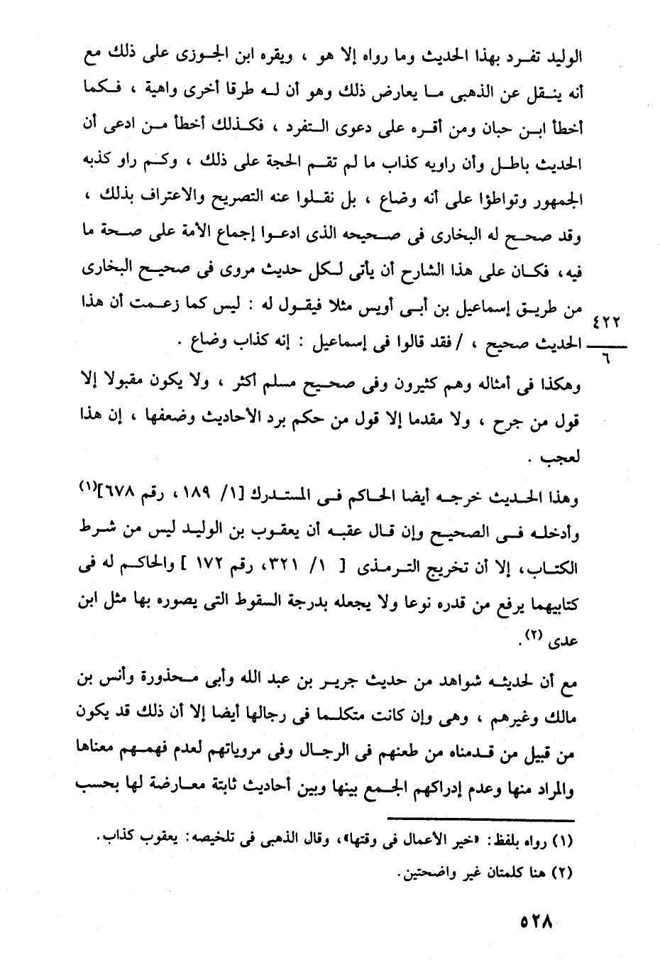 وهذا الحديث خرجه أيضًا الحاكم في المستدرك [1/ 189، رقم 678] (¬1) وأدخله في الصحيح وإن قال عقبه أن يعقوب بن الوليد ليس من شرط الكتاب، إلا أن تخريج الترمذى [1/ 321، رقم 172] والحاكم له في كتابيهما يرفع من قدره نوعا ولا يجعله بدرجة السقوط التي يصوره بها مثل ابن عدى (¬2).