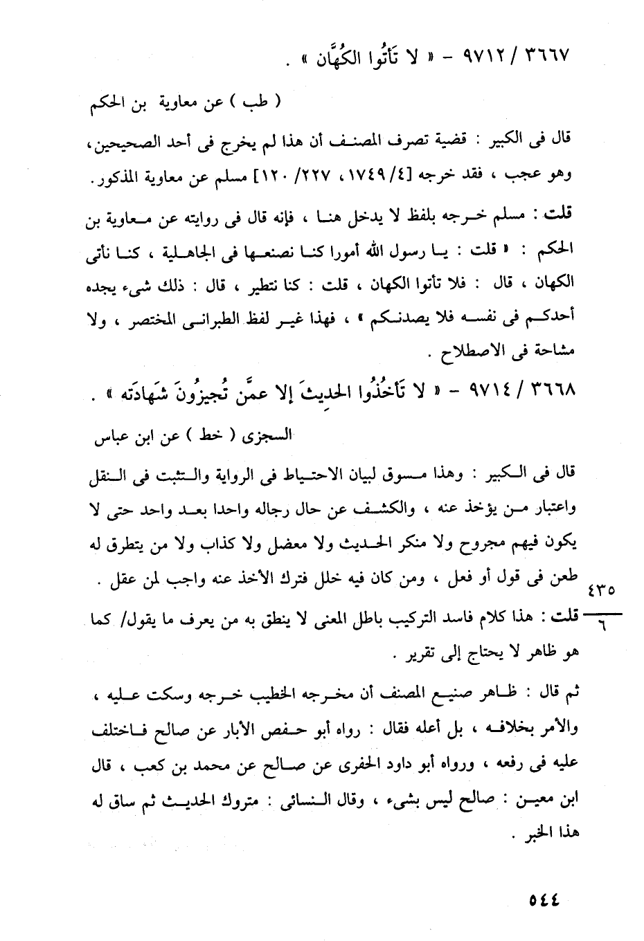 3668/ 9714 - "لا تَأخُذُوا الحدِيثَ إلا عمَّن تُجيزُونَ شَهادَته".