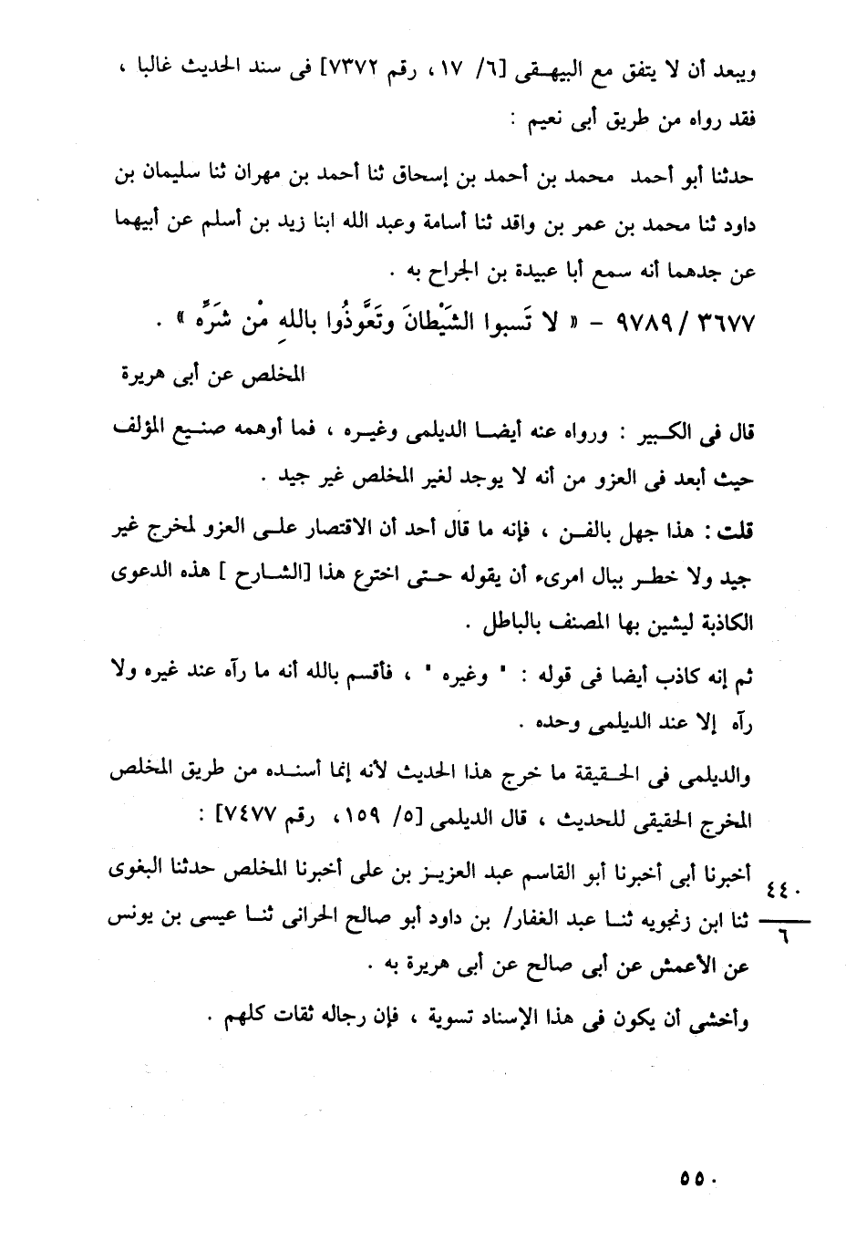 3677/ 9789 - "لا تَسبوا الشَيْطانَ وتَعَّوذُوا باللَّهِ مْن شَرِّه".