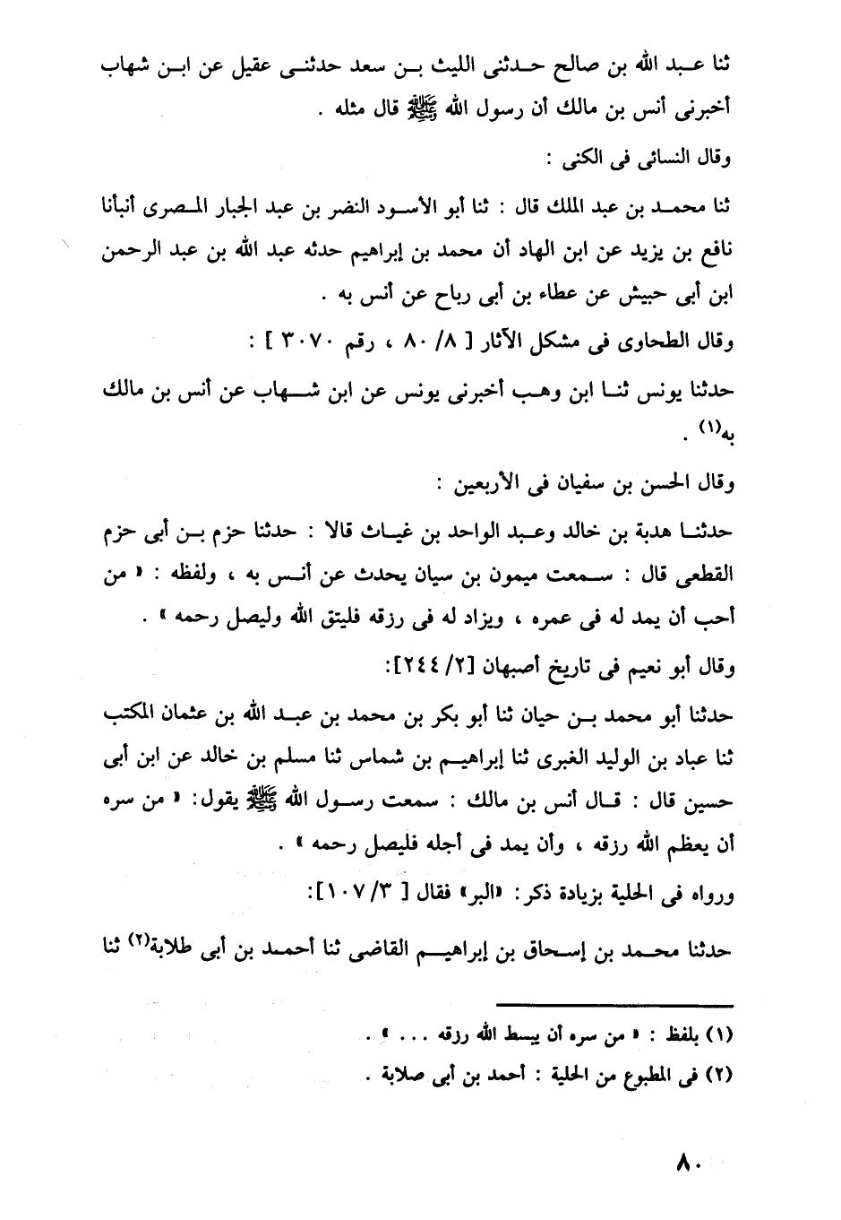 (¬1) بلفظ: "من سره أن يبسط اللَّه رزقه. . . ".